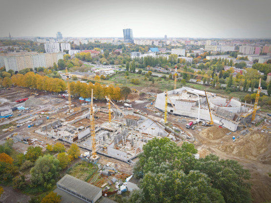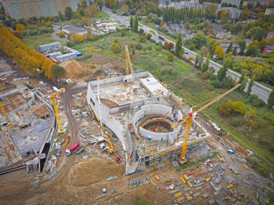 – Wyższy na razie jest obiekt, w którym znajdzie się przyszłe centrum edukacyjne. Tempo prac i ruch na całej budowie mogą robić wrażenie. Przewinęły się przez nią setki ludzi i masa sprzętu. W toku realizowanych do tej pory prac, Wykonawca korzystał z 6 żurawi wieżowych, a w czasie największej kumulacji robót, na budowie pracowało jednocześnie nawet 12 koparek i 20 wywrotek – informuje Piotr Zieliński, rzecznik prasowy spółki Fabryka Wody.