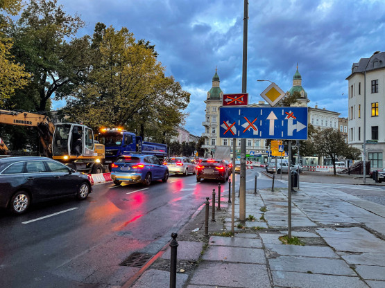 Pomimo utrudnień i zabrania pasów, kierowcy nie stali w korkach – w poniedziałek rano ruch w kierunku placu Kościuszki był zdecydowanie płynniejszy niż w przypadku śródmiejskiego odcinka alei Piastów od pl. Kościuszki do pl. Szarych Szeregów.