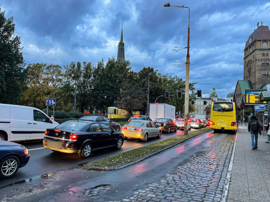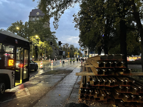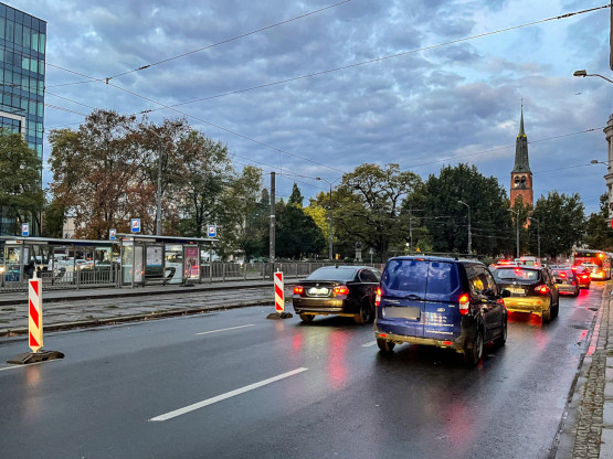Warto w tym miejscu dodać, że zwężenie ul. Krzywoustego do jednego pasa związane jest z wprowadzeniem wahadłowego ruchu tramwajowego. Te, pomimo utrudnienia, w poniedziałkowy poranek zaliczały „klasyczne, tylko kilkuminutowe opóźnienia”.