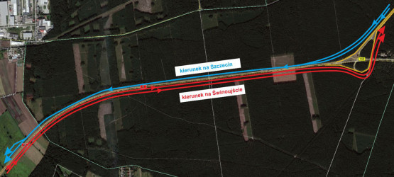 Wprowadzona obecnie organizacja ruchu zakłada funkcjonowanie jezdni w kierunku Świnoujścia z dwoma pasami ruchu w jedną stronę. Będzie to oznaczało powrót do przekroju drogi sprzed przebudowy. Jezdnia w kierunku Szczecina będzie miała do przełomu lipca/sierpnia jeden pas ruchu. Ruch będzie jednak przebiegał tak jak przed przebudową, czyli po łagodnym łuku, bez konieczności znaczącego zwalniania po to aby włączyć się w przeciwległą jezdnię.
