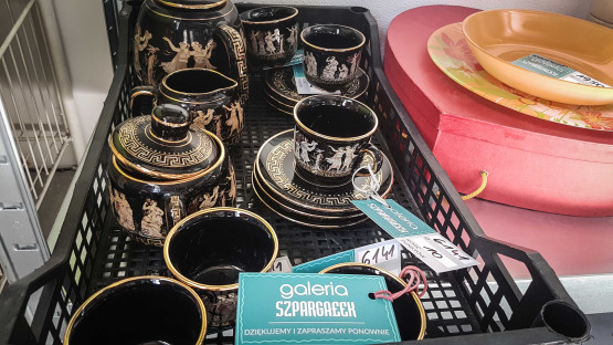 Jak informują pracownicy ekoportu, magazyny „Szpargałka” pękają w szwach. Dwa wypełnione są dekoracjami i wyposażeniem wnętrz, a trzeci – meblami. Na miejscu znajdziemy m.in. komody, krzesła, szafki nocne, szafy, imponujący kredens, porcelanowe zastawy, a także szczotki akumulatorowe, zabytkowy powiększalnik do zdjęć czy stare, radzieckie zegary.