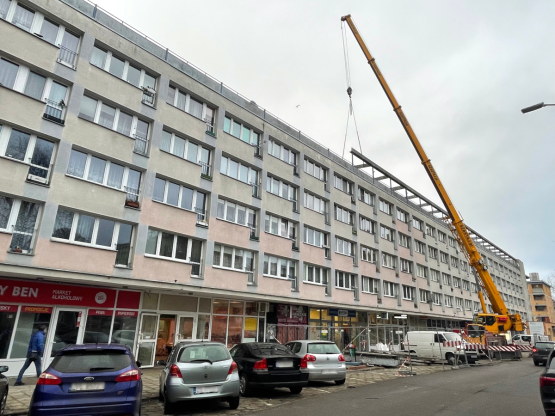 Na dachu bloku mieszkalnego przy ulicy Odzieżowej od kilku dni trwają prace wysokościowe, które polegają na usuwaniu stalowych konstrukcji. Zdaniem wielu Internautów, to wstęp do dobudowania kolejnego piętra w modernistycznym bloku. Inne podejrzenia ma szczeciński architekt Marcin Szneider.