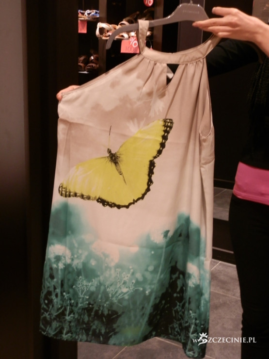 9p,10p Kwiaty i motyle. Zestaw ze spodniami doskonale sprawdzi się w chłodniejsze dni lata. Do niego idealnie pasują buty takie jak balerinki czy mokasyny. Sukienka stworzy udany duet z krótką, dżinsową kurtką.