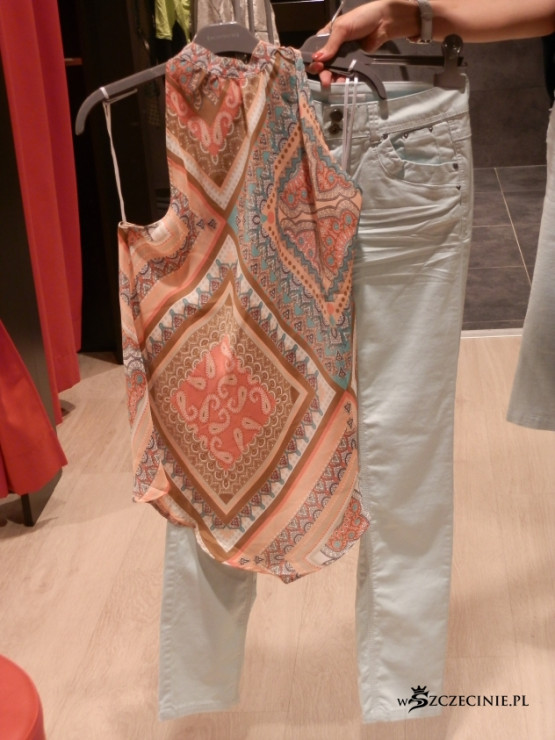 11p,12p Jasne, jednolite spodnie i kolorowe, dłuższe bluzki z odkrytymi ramionami. Ta bardziej zabudowana sprawdzi się na drobniejszych sylwetkach.