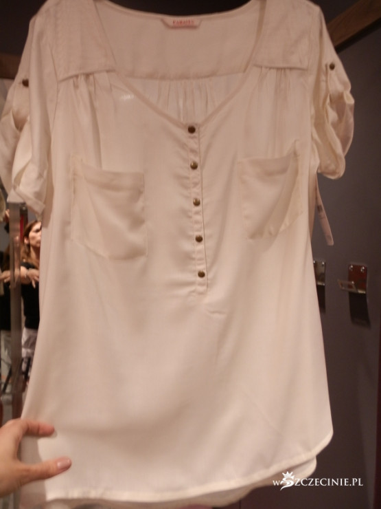 CAMAIEU Urokliwa bluzeczka z wiązaniem na boku. Fantastyczny lekki materiał doda jej właścicielce powabu. Dekolt na różne biusty!