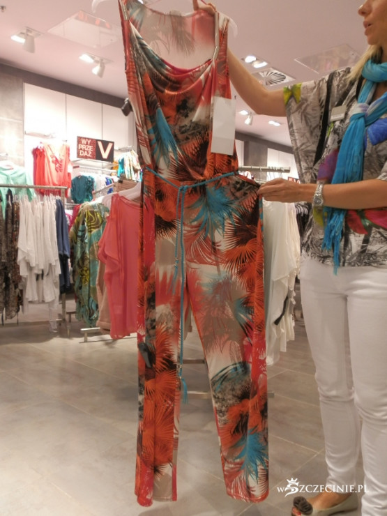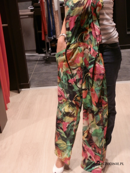 JACQUELINE RIU, PROMOD Przekombinowane? Niekoniecznie! Kombinezony są obecnie szalenie modne i mam wrażenie, że omijane przez nas wzrokiem… W tej cenie-warto zaryzykować i chociażby przymierzyć. Przy tak kwiecistych wzorach, pamiętajcie o umiarze w doborze dodatków. Wystarczy skromny but. Dopasowany kolorem sandałek lub pantofel, byleby w jednolitym kolorze. Polecam!