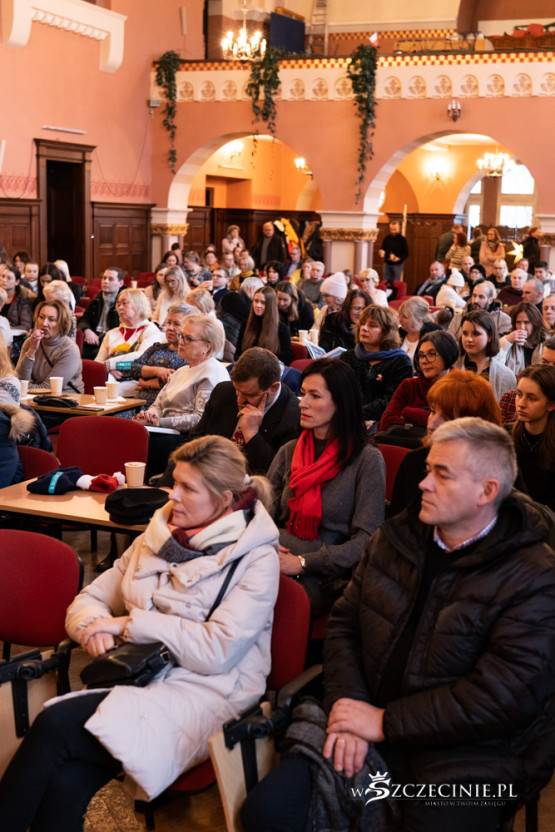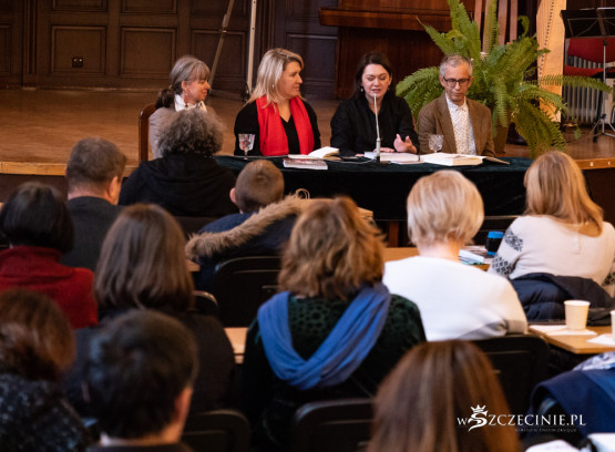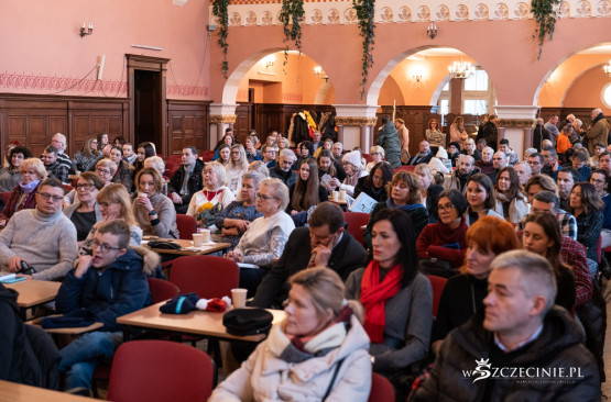 Spotkanie poprowadziła Katarzyna Świerczyńska, a w tle rozbrzmiewały kojące dźwięki płynące z harfy Emilii Raiter. Miejsca siedzące – dla wielu były wspomnieniem matur - zajęli pasjonaci kamienicznego Szczecina oraz działalności Moniki Szymanik.