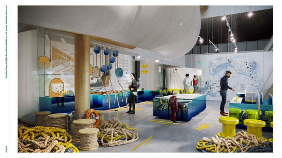 Wystawa stała Morskiego Centrum Nauki będzie podzielona na pięć stref tematycznych: Cała naprzód! (m.in. budowa statków, rodzaj napędów, sposoby sterowania), Chlap! (wodny plac zabaw dla dzieci), Życie na morzu (zawody związane z morzem), Morski żywioł (m.in. sposoby okiełznania morskiego żywiołu), Którędy do Afryki (metody nawigacji). Jej koncepcję, którą teraz będzie realizował wykonawca, przygotowali Karolina Perrin i Piotr Kossobudzki.