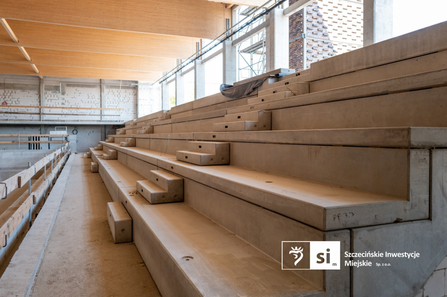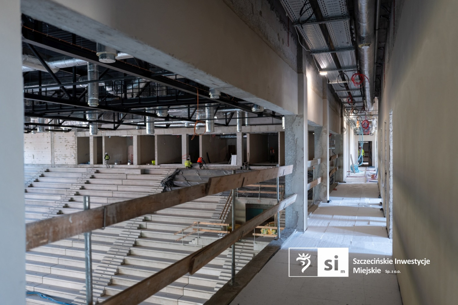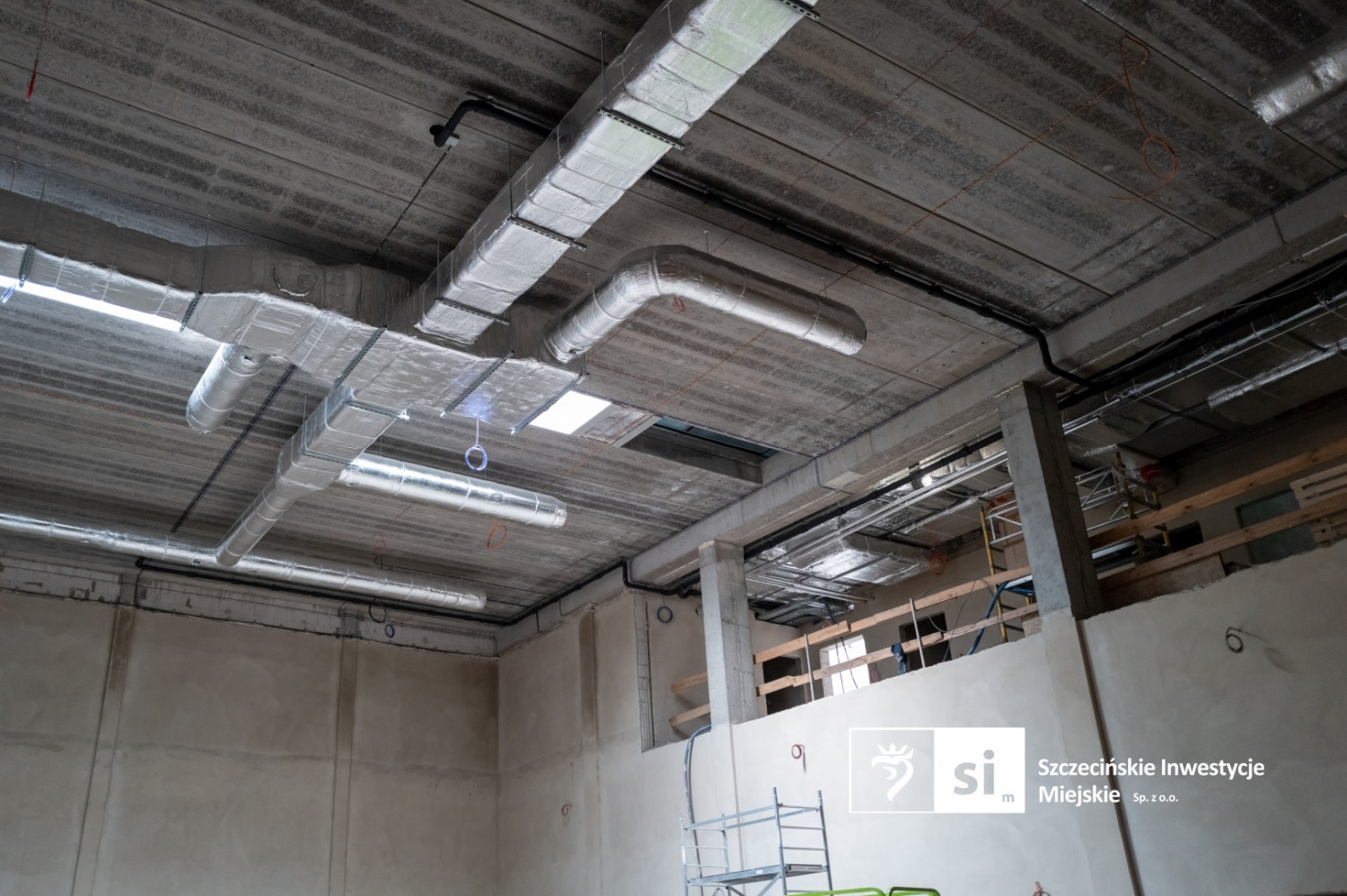 – Aktualnie realizowane prace koncentrują się na wykończeniu wnętrz oraz montażu kluczowych instalacji i elementów technicznych obiektu. W ramach robót wykończeniowych prowadzone są prace tynkarskie, układane są posadzki wewnętrzne oraz kontynuowane są prace przy wykonywaniu tras kablowych i okablowania instalacji całego obiektu. Montowane są także systemy wentylacji. Równolegle trwa montaż stolarki okiennej – wylicza Piotr Zieliński, rzecznik prasowy miasta ds. inwestycji.