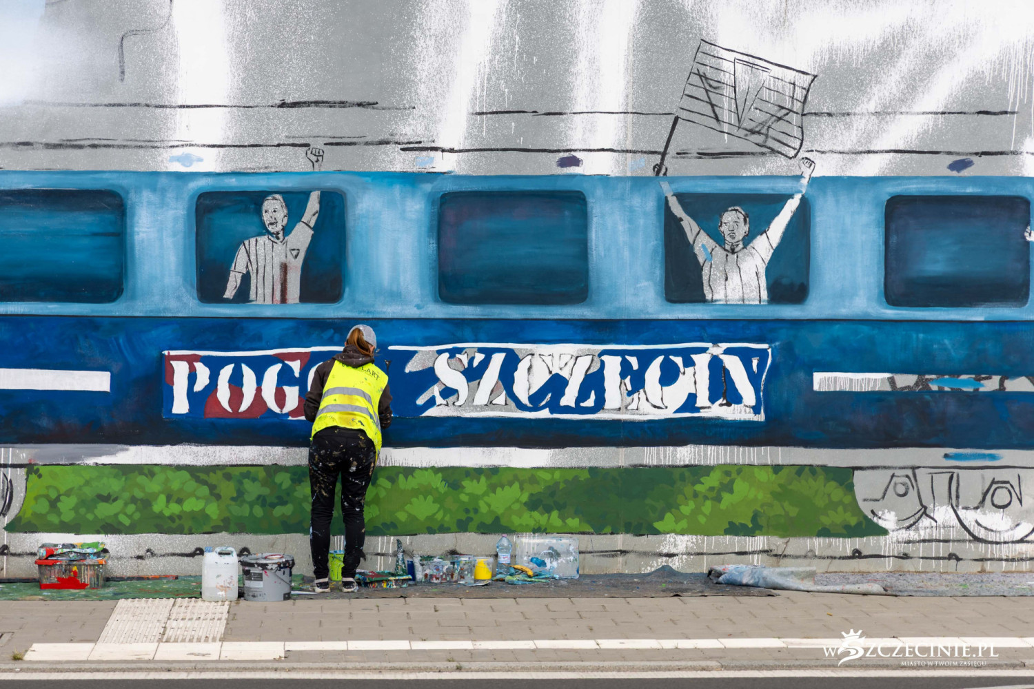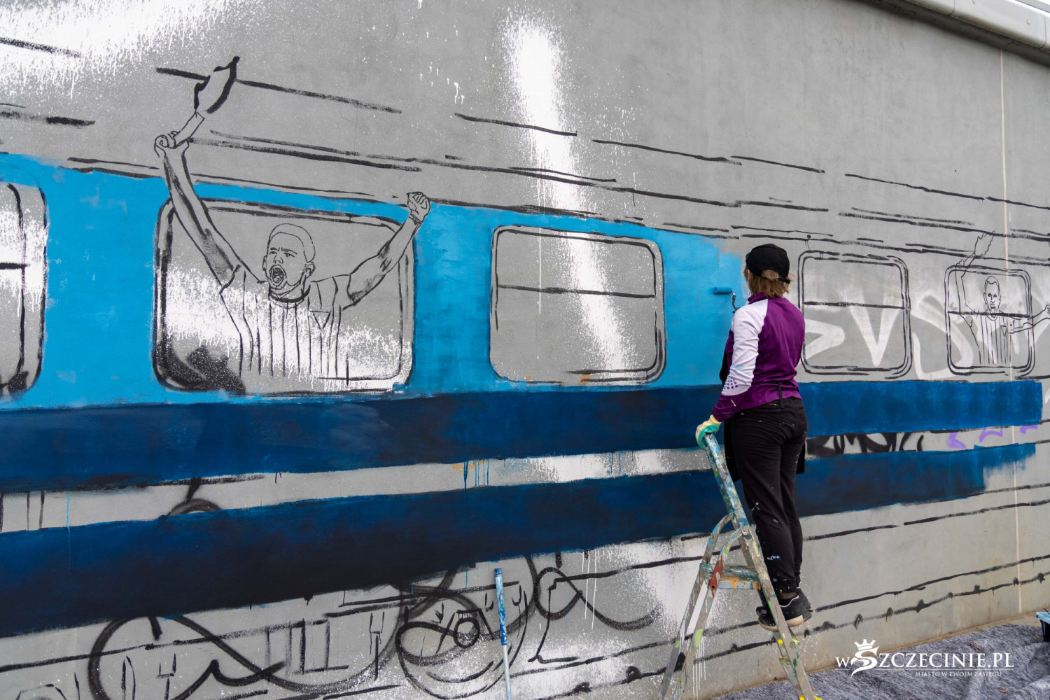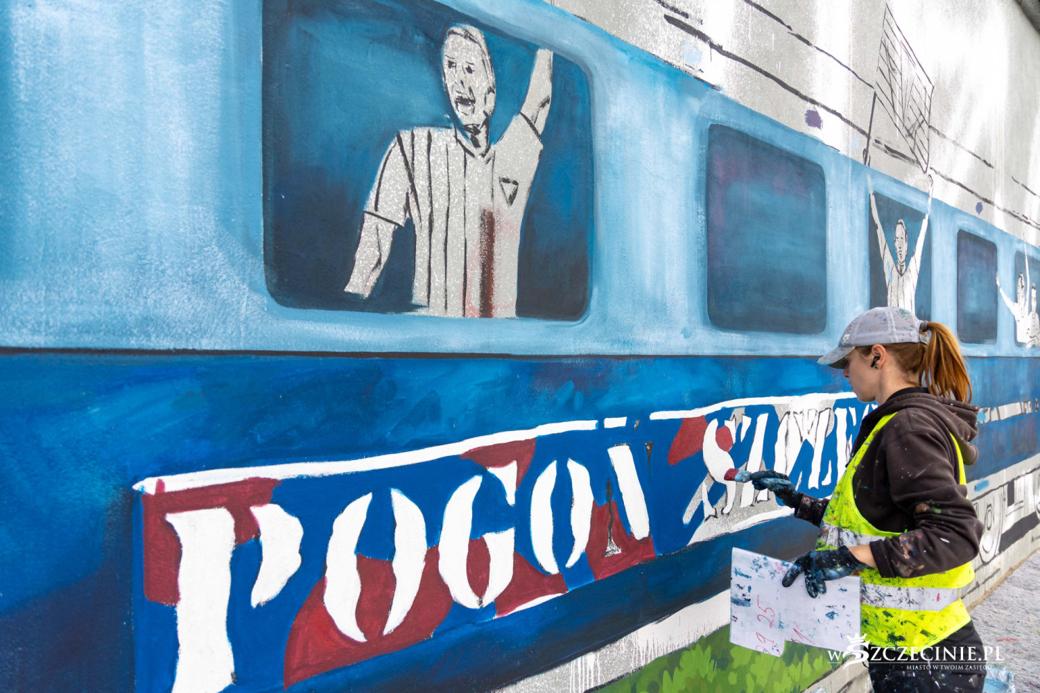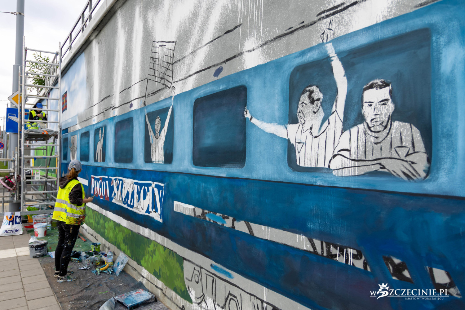 Mural z kibicowskim pociągiem to część projektu „Wirtualnego Muzeum Pogoni Szczecin”, wybranego przez mieszkańców do realizacji w ramach Szczecińskiego Budżetu Obywatelskiego.