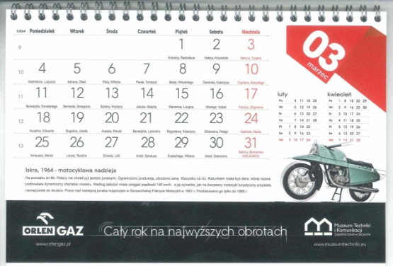 Z tym większą satysfakcją ORLEN GAZ przyjął wyróżnienie dla kalendarza „Cały rok na najwyższych obrotach”. Powstał we współpracy z Muzeum Techniki i Komunikacji - Zajezdni Sztuki w Szczecinie. Prezentuje prototypy samochodów, motoryzacyjne ciekawostki oraz unikalne egzemplarze aut z kategorii SAM, czyli pojazdów złożonych samodzielnie. To fascynujące osiągnięcia polskich konstruktorów. Designerskie, nowatorskie, awangardowe. Jury konkursu doceniło także sposób ich prezentacji - połączenie zabytków z dynamiczną i nowoczesną linią graficzną, zaprojektowaną przez płocki Agpress, odpowiedzialny także za druk kalendarzy ORLEN GAZ.