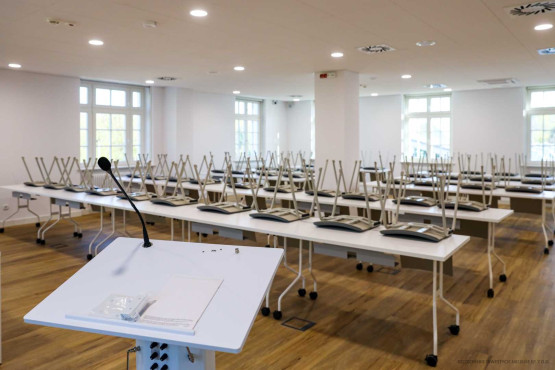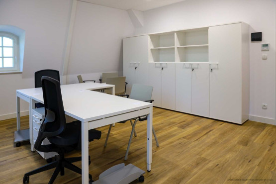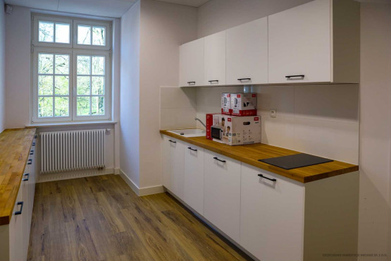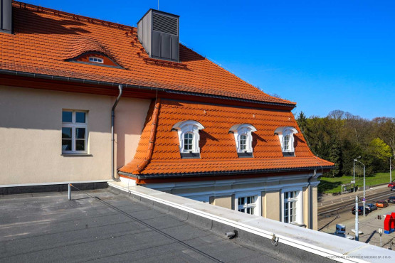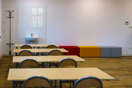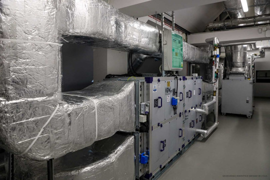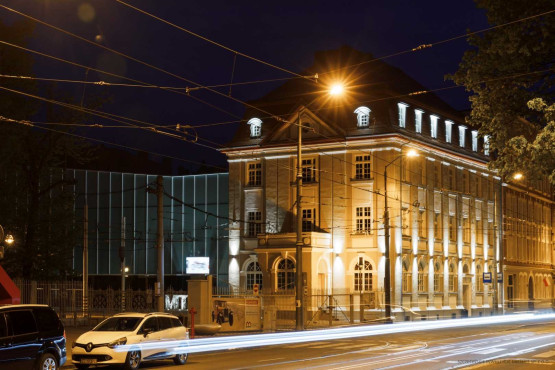 Dodatkowe przestrzenie ekspozycyjne, sale edukacyjne i pomieszczenia administracyjne przygotowano w wyremontowanej kamienicy z 1912 r. Kiedyś mieściła się tam dyspozytornia, pomieszczenia techniczne zajezdni, a na piętrach mieszkania. Od lat budynek stał jednak pusty i niszczał. Teraz przebudowano jego wnętrza i odrestaurowano elewację, przywracając m.in. oryginalny kolor. Wymieniona została konstrukcja więźby dachowej, podwyższono kondygnację piwnicy.