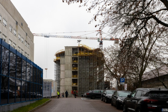 Na dachu zakończyła się już wylewka płyty lądowiska dla helikopterów. Przez łącznik pacjenci będą trafiać stamtąd do głównego SOR w szpitalu.