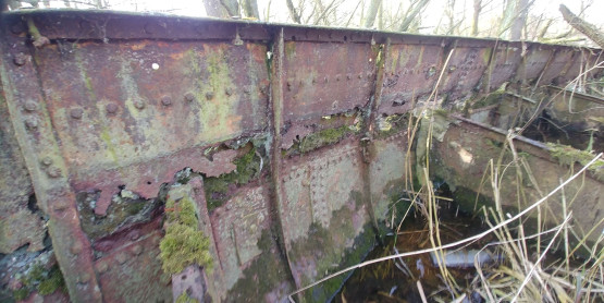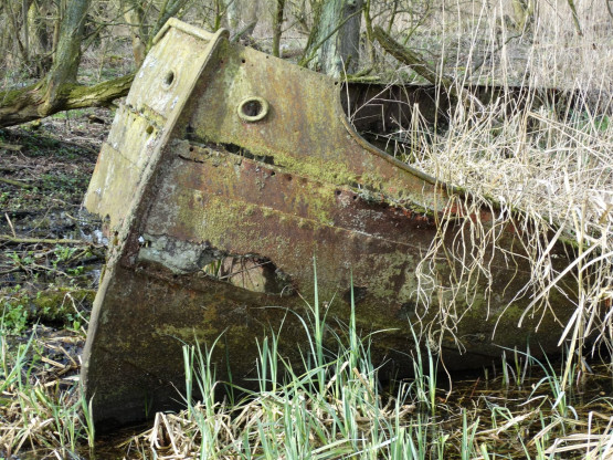 Najprawdopodobniej to fragment niemieckiego holownika parowego, który został zatopiony lub uszkodzony w czasie II wojny światowej. Zdjęcia lotnicza z końca lat 40. pokazują, że w okolicy było więcej wraków, ale z niewiadomych przyczyn tylko ten jeden nie został później usunięty.