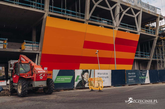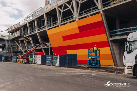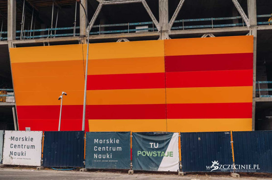 Kilka dni temu generalny wykonawca budynku Morskiego Centrum Nauki – firma ERBUD S.A. – rozpoczął proces montowania płyt elewacyjnych. Pierwsze kolorowe panele pojawiły się na obiekcie od strony ul. Wendy. W kolejnym etapie płyty zostaną pokryte czarną siatką cięto - ciągnioną. Ma ona nadać elewacji ostateczny kształt.