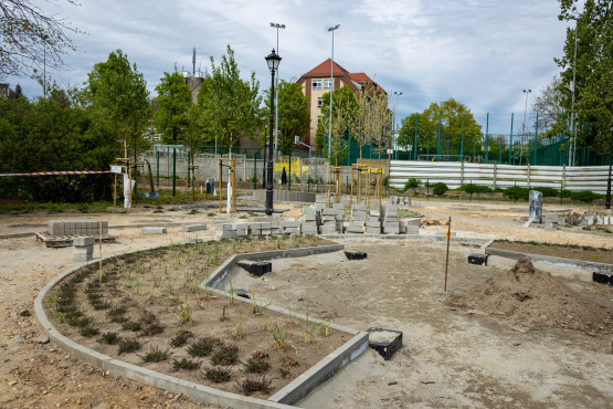 – Wykonano już instalację oświetleniową, zamontowano też ozdobne słupy oświetleniowe wraz z oprawami. Obecnie wykonywane są alejki i dojścia, miniboisko trawiaste, przygotowano również teren do zamontowania wiaty i elementów małej architektury. Zamontowano już ogrodzenie z paneli stalowych. Pojawiły się też nowe nasadzenia: 25 drzew oraz prawie 300 liściastych i iglastych krzewów, które będą ozdobą tego miejsca – relacjonuje Sylwia Cyza-Słomska z urzędu miasta.