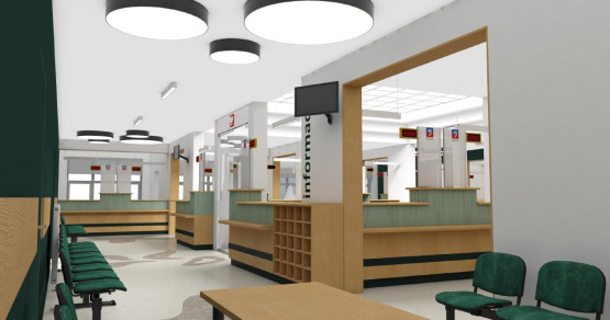 Zakres prac obejmuje m.in. wyburzenie ścian, wymianę stolarki drzwiowej, instalacji elektrycznej i teletechnicznej, wykonanie wentylacji i klimatyzacji. Modernizacji ulegnie system kolejkowy oraz alarmowy. Powstanie monitoring.
