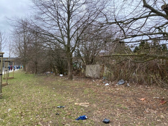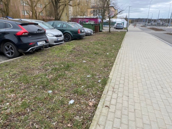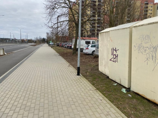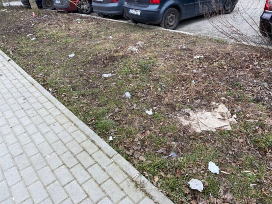 Przemysław Szymański zwraca również uwagę na niewystarczająca liczbę koszy. „O tym, jak bardzo ich brakuje, można się przekonać podczas spaceru nowopowstałym chodnikiem – od strony osiedlowych zabudowań. Pas zieleni pełen jest odpadów komunalnych, w szczególności szklanych i plastikowych opakowań” – informuje.