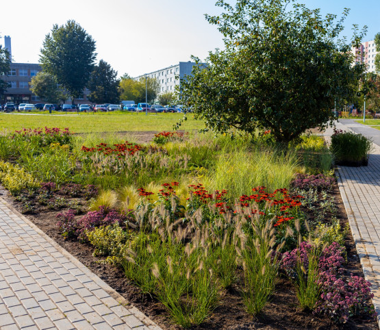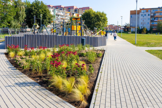 „Jest sporo trawy, kilkaset krzewów, kilkadziesiąt nowych drzew, wysiana została również łąka kwietna. Wprost do relaksu stworzony jest zakątek wokół drewnianej pergoli, z ukwieconymi krzewami, domkami dla owadów, kwiatami i pnączami” – wymienia Paulina Łątka z biura prasowego magistratu.