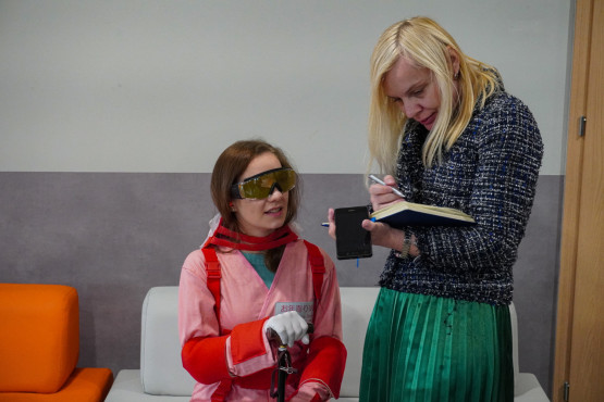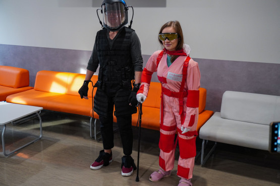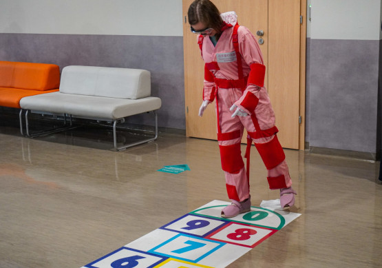 – Są tam położone specjalne filtry, które pozwalają na całkowitą symulację. Sebastian ma w tej chwili zaćmę i dysfunkcję plamki żółtej. Stroje zostały wymyślone właśnie po to, żeby każdy z nas, który ma lat trochę mniej niż 70-80, mógł poznać odczucia osób starszych – mówi prof. dr hab. n. med. Ewa Stachowska, kierownik Katedry Żywienia Człowieka i Metabolomiki, która była zaangażowana w sprowadzenie kombinezonów na uczelnię.