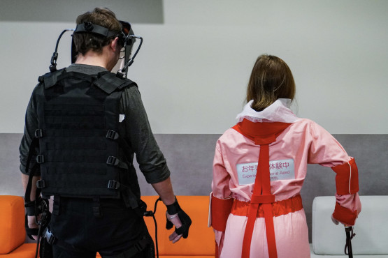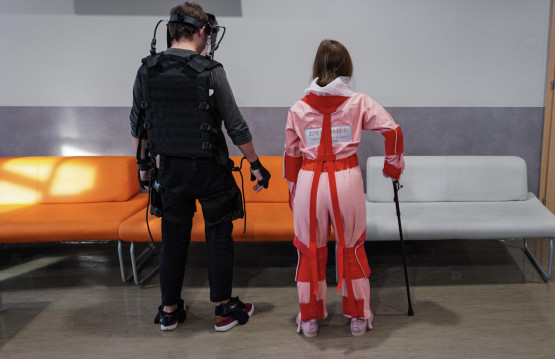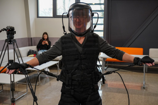 Jest też wersja przygotowana dla studentek. Z goglami VR, obciążnikami i specjalnymi pasami, które sprawiają, że młoda, wysportowana kobieta musi przyjąć pochyloną sylwetkę.