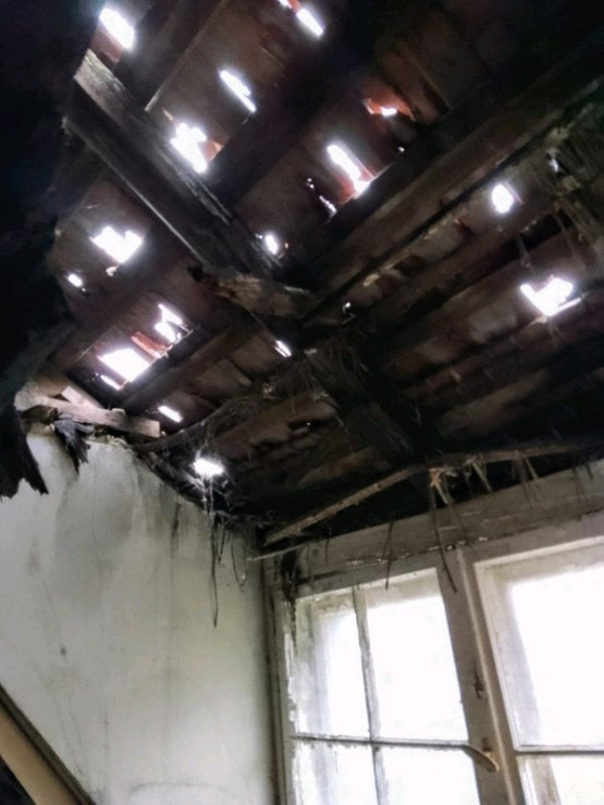 – Po moim zgłoszeniu ZBiLK zabezpieczył w tym budynku drzwi i okna, ale nie widziałem, żeby wykonano jakieś prace na dachu. A te dziury trzeba jak najszybciej zabezpieczyć, choćby plandeką. Wlewający się do środka deszcz bardzo przyspieszy degradację budynku. Zwłaszcza drewnianej więźby dachowej – mówi przewodnik po północnych osiedlach Szczecina.