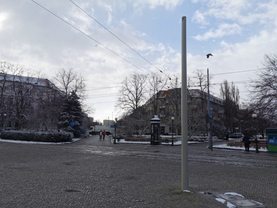 Metalowy słup ustawiony został w centralnej części placu Grunwaldzkiego, tuż obok wyznaczonej drogi rowerowej. – I z kompletnym pominięciem jakiegokolwiek porządku i układu przestrzennego placu. To niedopuszczalne, żeby ta konstrukcja miała pozostać dłużej w tym miejscu – krytykuje radny miejski Przemysław Słowik.