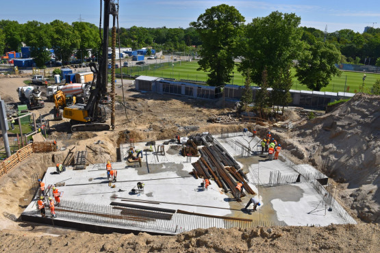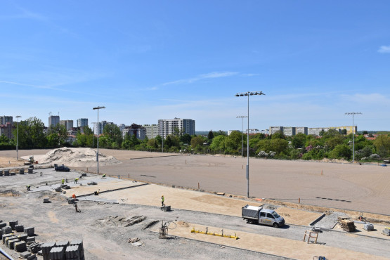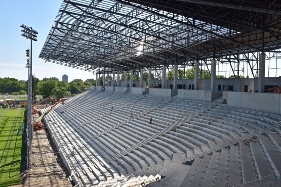 – Aktualnie w narożniku pomiędzy trybunami południową i wschodnią trwa budowa płyty fundamentowej. Wylewany jest beton, montowane jest zbrojenie, wykonywane są pale wiercone. Rozpoczęcie prac zmierzających do budowy trybuny wschodniej, oznaczało tymczasowe przesunięcie głównej murawy boiska w kierunku trybuny południowej. Docelowa przebudowa głównej płyty boiska rozpocznie się w okresie letnim podczas przerwy w rozgrywkach. Z uwagi na poziom skomplikowania robót, te prace potrwają ok. 7-8 tygodni – informuje Piotr Zieliński, rzecznik prasowy miasta ds. inwestycji.