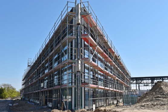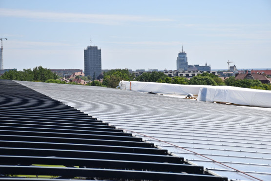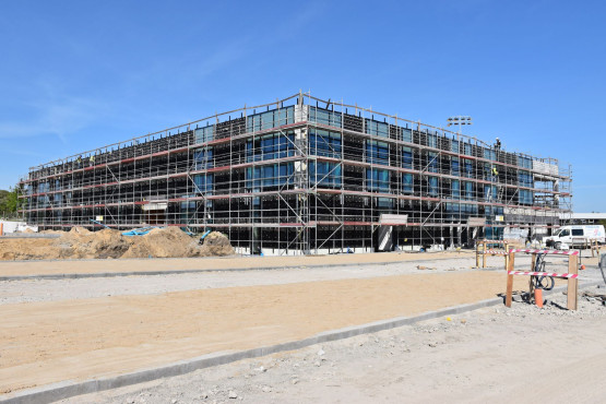 Coraz bardziej zaawansowane są roboty w budynku Centrum Szkolenia Dzieci i Młodzieży, który postawiono na koronie stadionu. Prowadzone są tam prace instalacyjne związane z sieciami elektrycznymi i wodno-kanalizacyjnymi. Na ścianach kładzione są gładzie, trwa montaż stolarki okiennej.