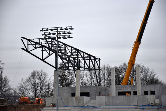 To już jednak przeszłość. Tamten dach został rozebrany na początku prac. A po gruntownej przebudowie cały stadion będzie zadaszony. Najpierw niezbędna konstrukcja powstanie na trybunie południowej.