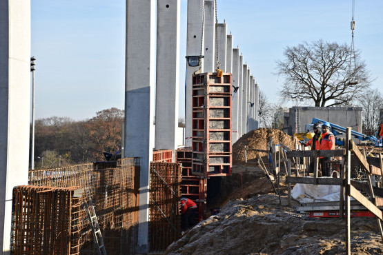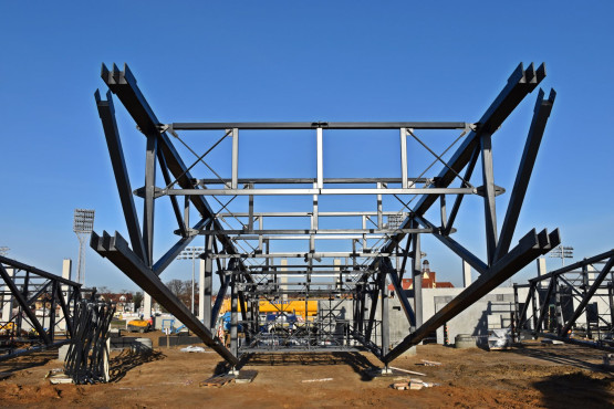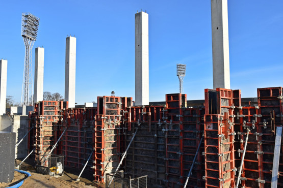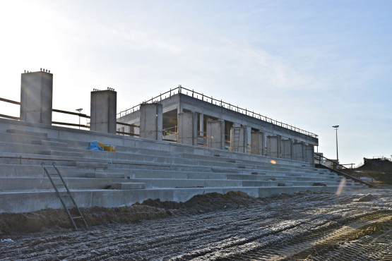 Na placu budowy stadionu widać stałe postępy. Dwie nowe trybuny nabierają powoli kształtów. Równolegle prowadzone są prace w kilku miejscach.