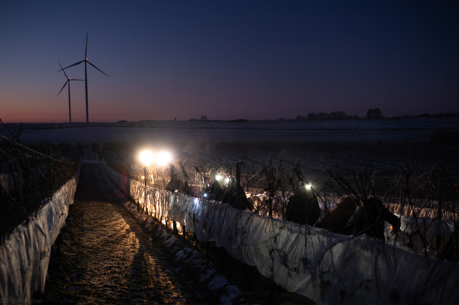 W poniedziałek o 4 nad ranem w Baniewicach temperatura spadła do -10 stopni, co pozwoliło rozpocząć zbiory. Godzinę później rozpoczęło się winobranie, a następnie wyciskanie moszczu z zamarzniętych gron.