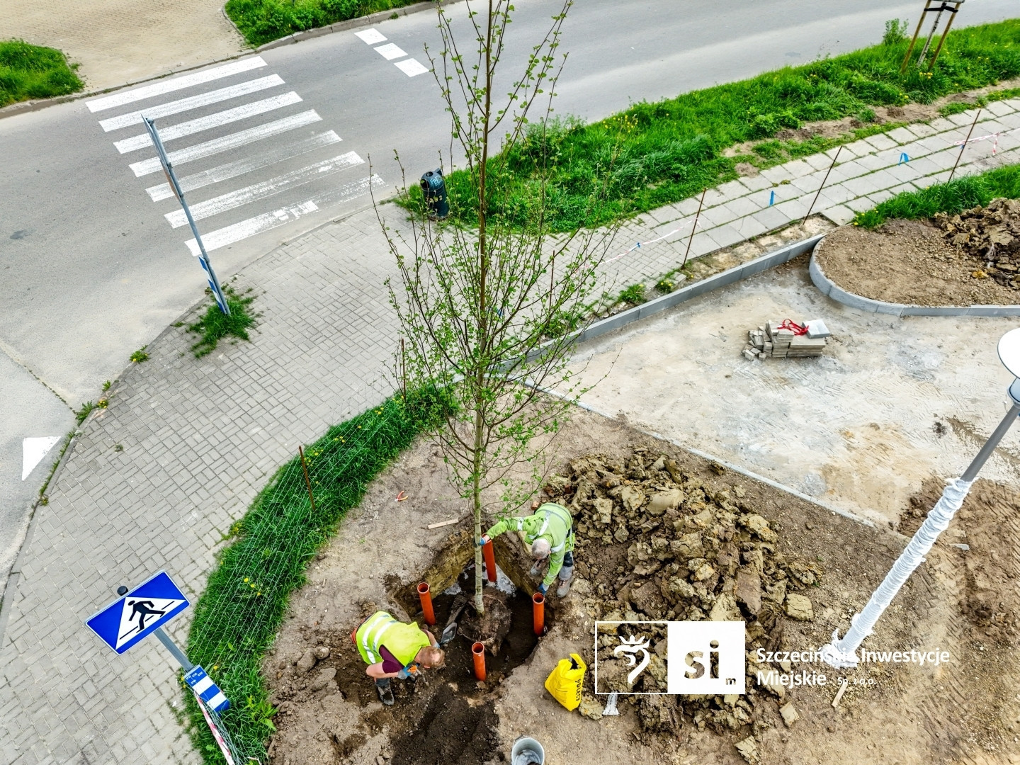 Całość ma zostać uzupełniona mieszanką czarnoziemu z oczyszczonym podłożem rodzimym, a każde drzewo – ustabilizowane i zabezpieczone warstwą mulczu oraz objęte regularną pielęgnacją.