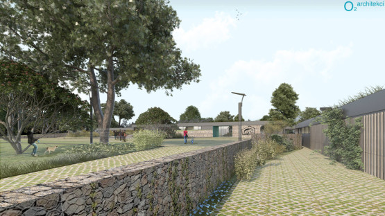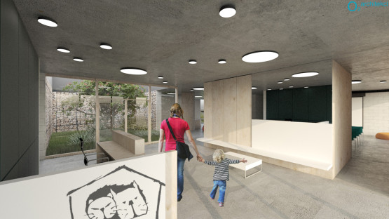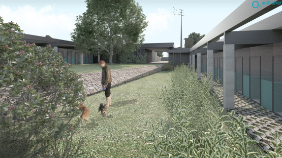 W budynkach obok przewidziano strefę dla odwiedzających, pokój adopcyjny do spotkań i zabaw ze zwierzętami, sale edukacyjne, gabinet i szpital dla zwierząt, pomieszczenia socjalne z kuchnią, magazyny, biura. Według projektu, pawilony dzięki umiejętnemu usytuowaniu na różnych poziomach terenu mają maksymalnie wtopić się w otoczenie. Przy schronisku powstanie ogólnodostępny, wyposażony w urządzenia wybieg dla psów, z którego będą mogli korzystać ze swoimi pupilami wszyscy mieszkańcy.