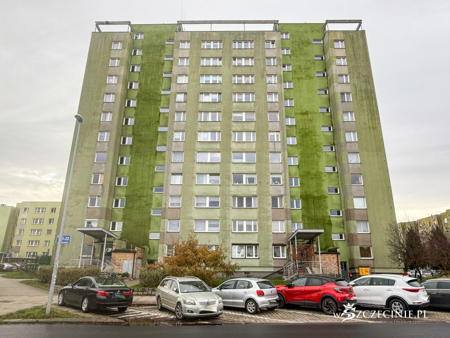 Na początek widzimy jednak nie najlepszą wizytówkę tego fragmentu osiedla. Ciąg zniszczonych kontenerów, stojących jeden na drugim.