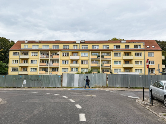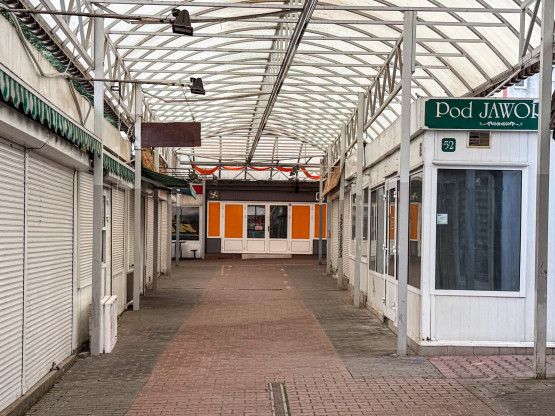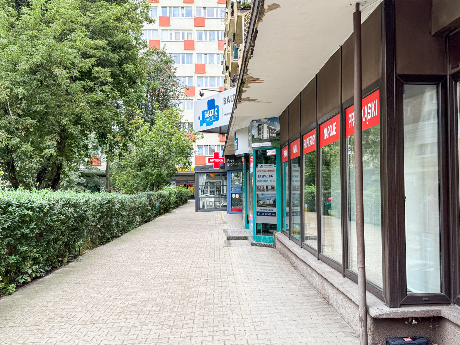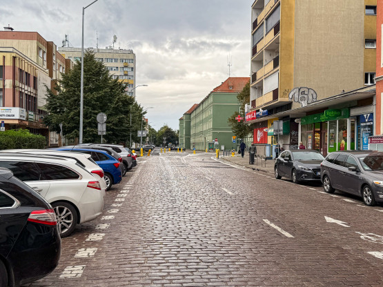 Idziemy dalej. Przechodzimy obok niewielkiego pasażu handlowego i wieżowca z lat 70., w którym znajdziemy same kawalerki.