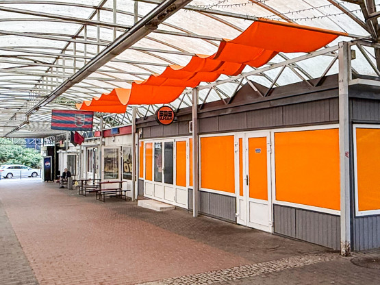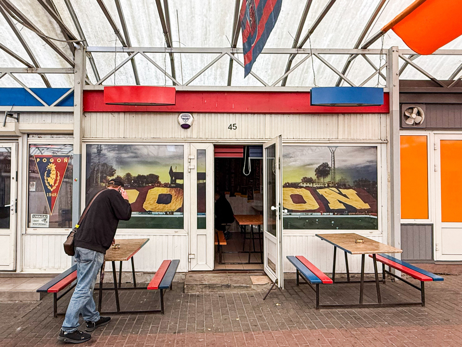 Przechodzimy pustymi alejkami. Otwarte są jedynie budki z owocami morza oraz pub fanów Pogoni Szczecin.