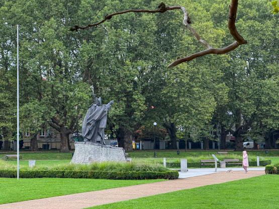 Wspomina przy tym o wizycie Papieża Jana Pawła II, który do Szczecina przyjechał 11 czerwca 1987 roku. Na Jasnych Błoniach odprawił mszę dla rodzin. Kilka lat później na zielonym terenie postawiono pomnik z podobizną Ojca Świętego według projektu Czesława Dźwigaja.
