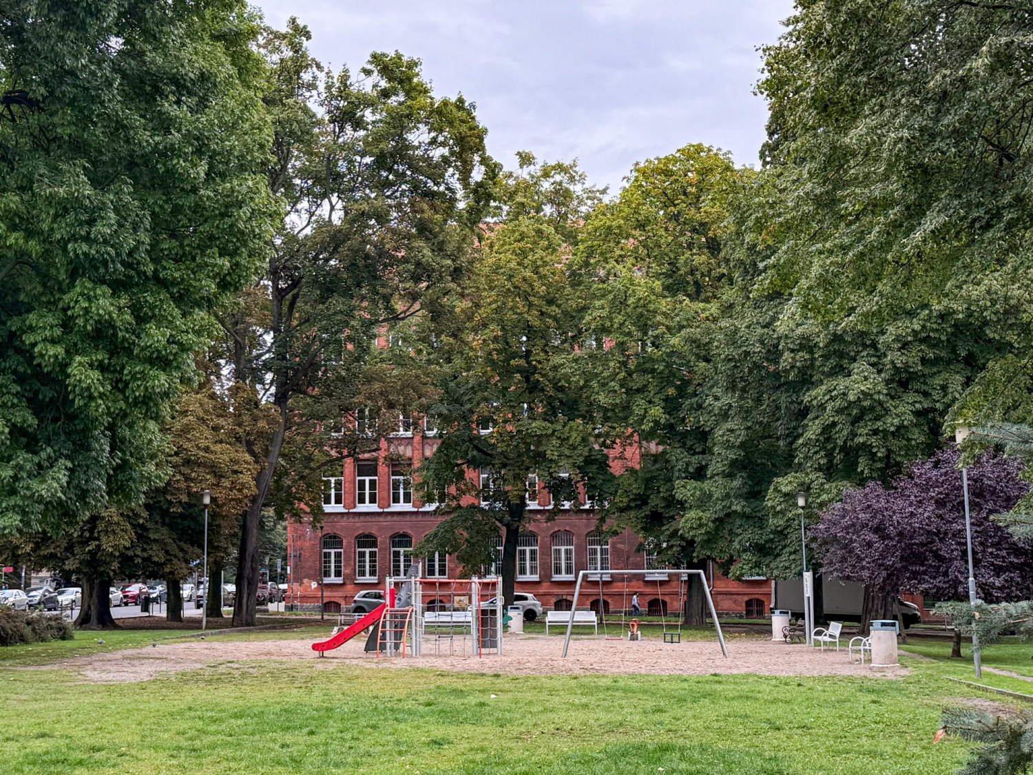 Mijamy Teatr Lalek Pleciuga, który w 2009 roku zajął miejsce boiska na dawnym placu Żukowa. – To zmiana zdecydowanie na plus. Kiedyś było boisko, obok chodziło się na kasztany, a z drugiej strony był basen, gdzie karmiło się kaczki. Ostatnie lata teren był jednak mocno zaniedbany i wieczorami strach było tędy przechodzić – wspomina szczecinianka.