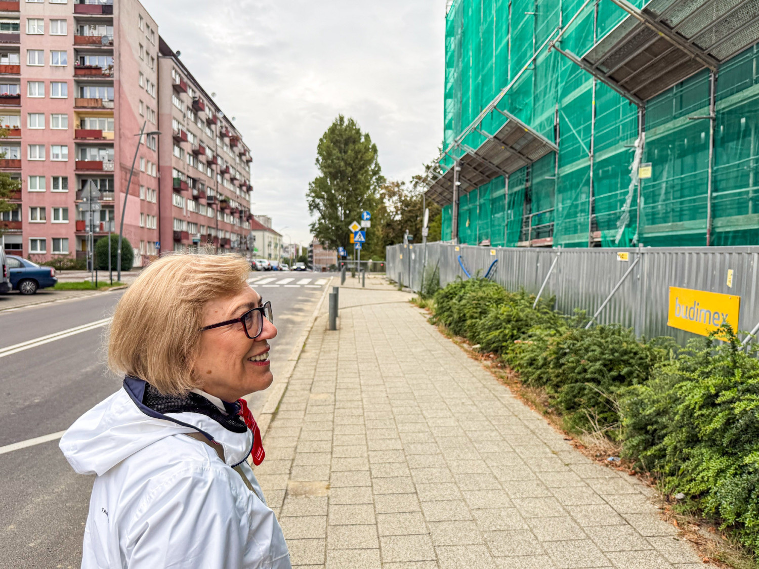 – O, a tutaj co nam chcieli zrobić! – mówi, wskazując na wykopany dół przy ul. Szymanowskiego.