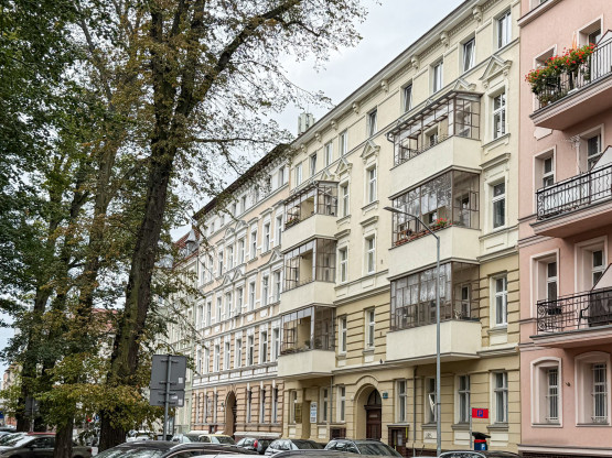 Wracamy na szlak. Z wieżowca TVP skręcamy w ulicę Niedziałkowskiego – kiedyś arteria pełna szarych kamienic, dziś cieszy oczy kolorowymi elewacjami.