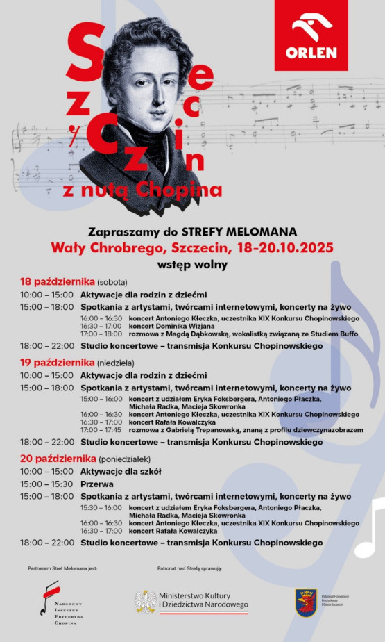 – Konkurs Chopinowski to wydarzenie, które od ponad stu lat porusza serca melomanów na całym świecie. Łączy pokolenia, inspiruje, pokazuje, jak wielką siłę ma muzyka. Dzięki Strefom Melomana chcemy, by ta wyjątkowa atmosfera, dotarła także poza sale koncertowe i była dostępna nie tylko dla publiczności w Warszawie, ale również dla mieszkańców innych regionów Polski. To nasz sposób na dzielenie się pięknem muzyki Chopina, budowanie wspólnoty i promowanie kultury, która jest dumą Polski - mówi prezes zarządu Orlen Ireneusz Fąfara.
