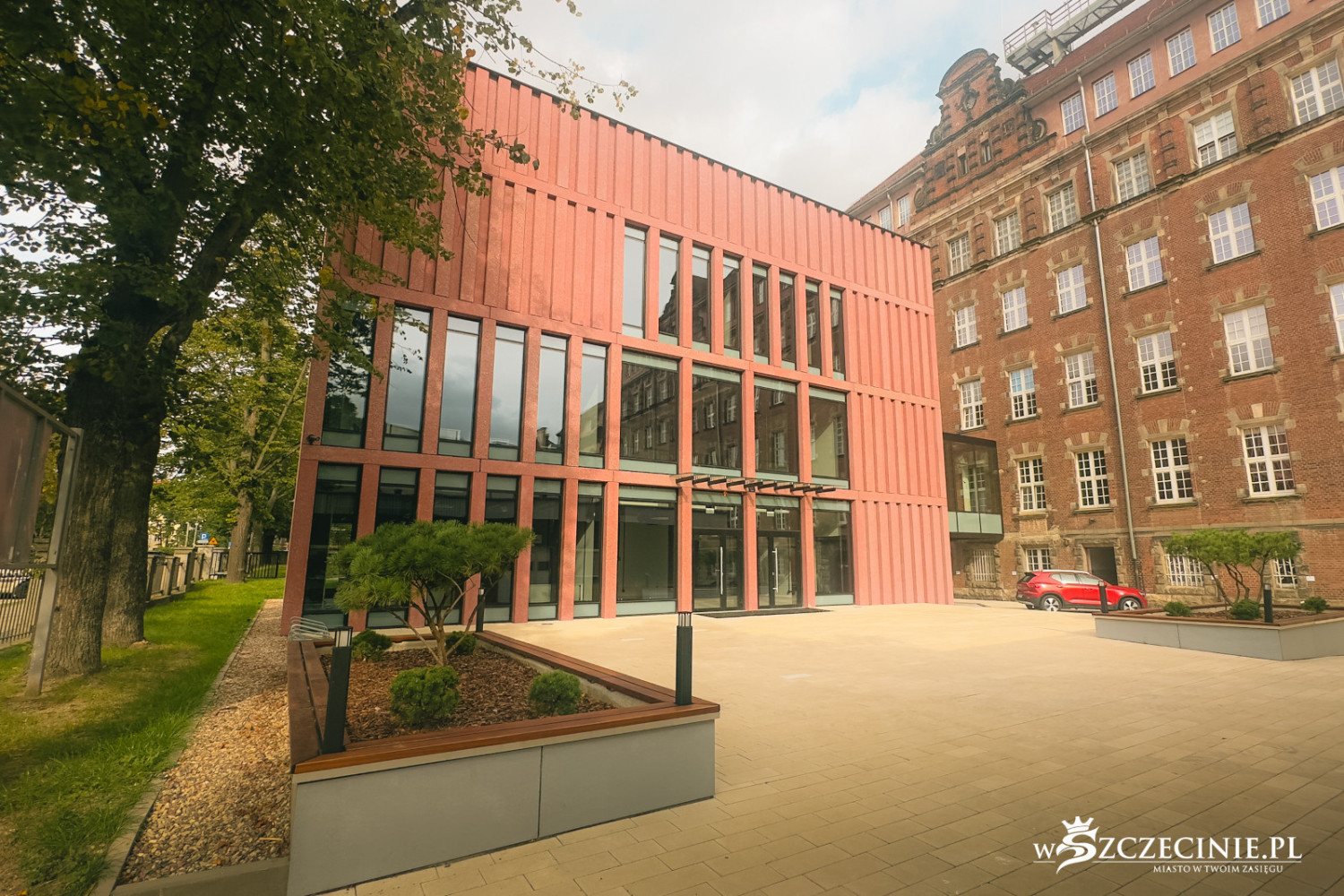 Nie konkuruje z zabytkowym gmachem i nie przeszkadza