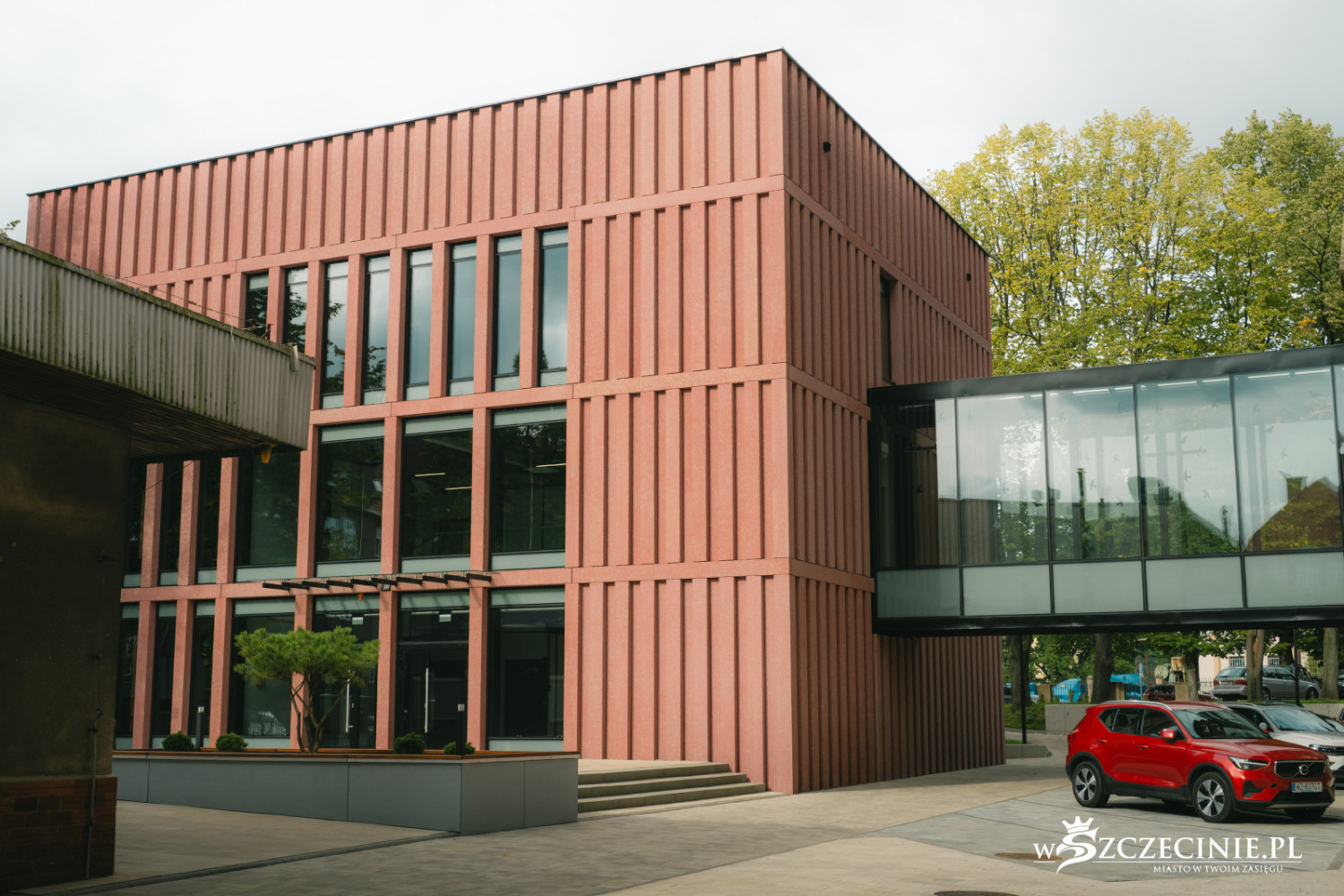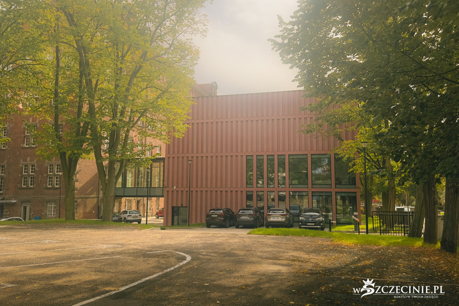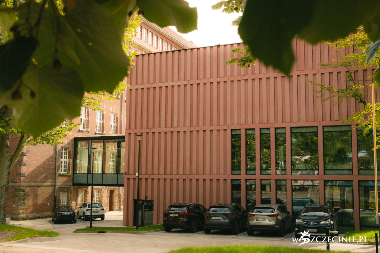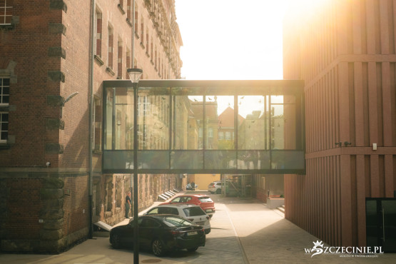 – Wały Chrobrego to zasadniczo zamknięta, ukształtowana historycznie kompozycja przestrzenna objęta ochroną konserwatorską. Każda ingerencja w taki układ urbanistyczno-architektoniczny musi być szczególnie przemyślana i odpowiednio wkomponowana – tłumaczy. – Północna elewacja budynku znajduje się w tej samej linii co północna elewacja gmachu głównego, a linia elewacji frontowej zbliżona jest do linii elewacji sali gimnastycznej. Dzięki temu wszystkie budynki kampusu tworzą spójną kompozycję przestrzenną. Obiekt dzięki niewielkiej skali ma formę pawilonu usytuowanego wśród zieleni i nawiązuje tym samym do niższego skrzydła gmachu głównego od strony ulica Zygmunta Starego.