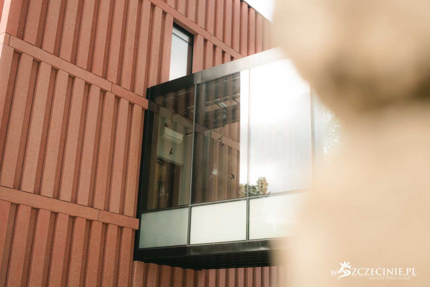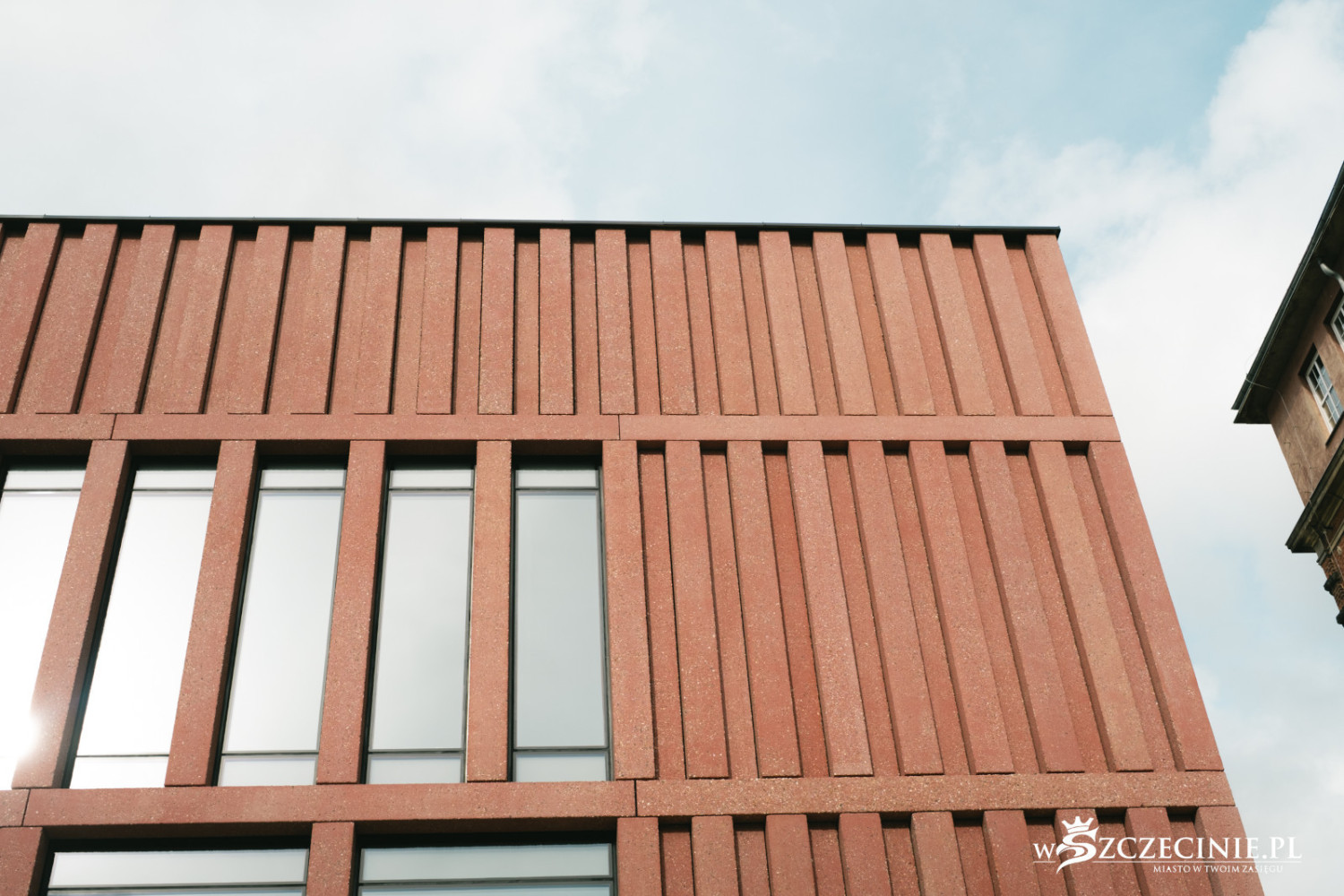 – Budynek jest stosunkowo niewielki i prosty. W otoczeniu ceglanych gmachów krytych dachówką ceramiczną wpasowuje się kolorystyką i chropowatą teksturą betonowej elewacji. Kompozycja elewacji jest prosta i geometryczna, przez wertykalność jej elementów nieco monumentalna – mówi Tomasz Sachanowicz.