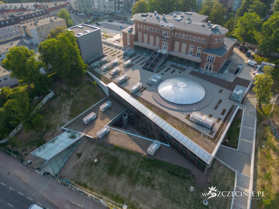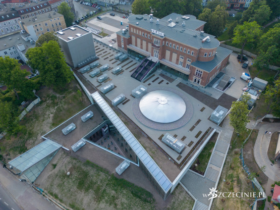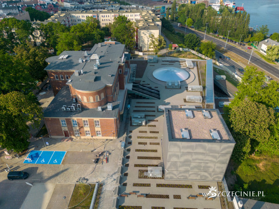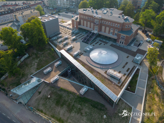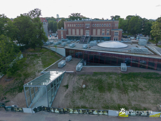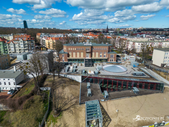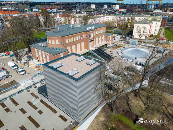 Na dachu nowego budynku Teatru Polskiego ma znaleźć się ogólnodostępny teren rekreacyjny z widokiem na Międzyodrze. Na wizualizacjach sprzed kilkunastu lat można zobaczyć zielony dach z kominem scenicznym i świetlikiem sceny szekspirowskiej. Stan rzeczywisty jednak różni się od tego przedstawionego w wizjach projektanta.