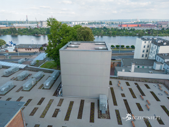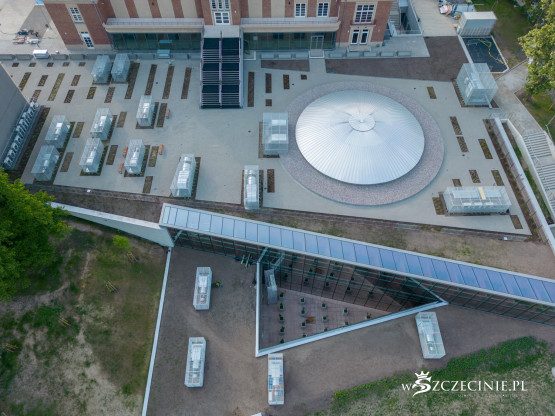– To część układu napowietrzania i oddymiania budynku w przypadku pożaru – wyjaśnia. – Montaż wszystkich urządzeń był niezbędny na dachu nowego budynku z powodu ich gabarytów, lokalizacji i układu instalacji wewnątrz budynku zabytkowego.