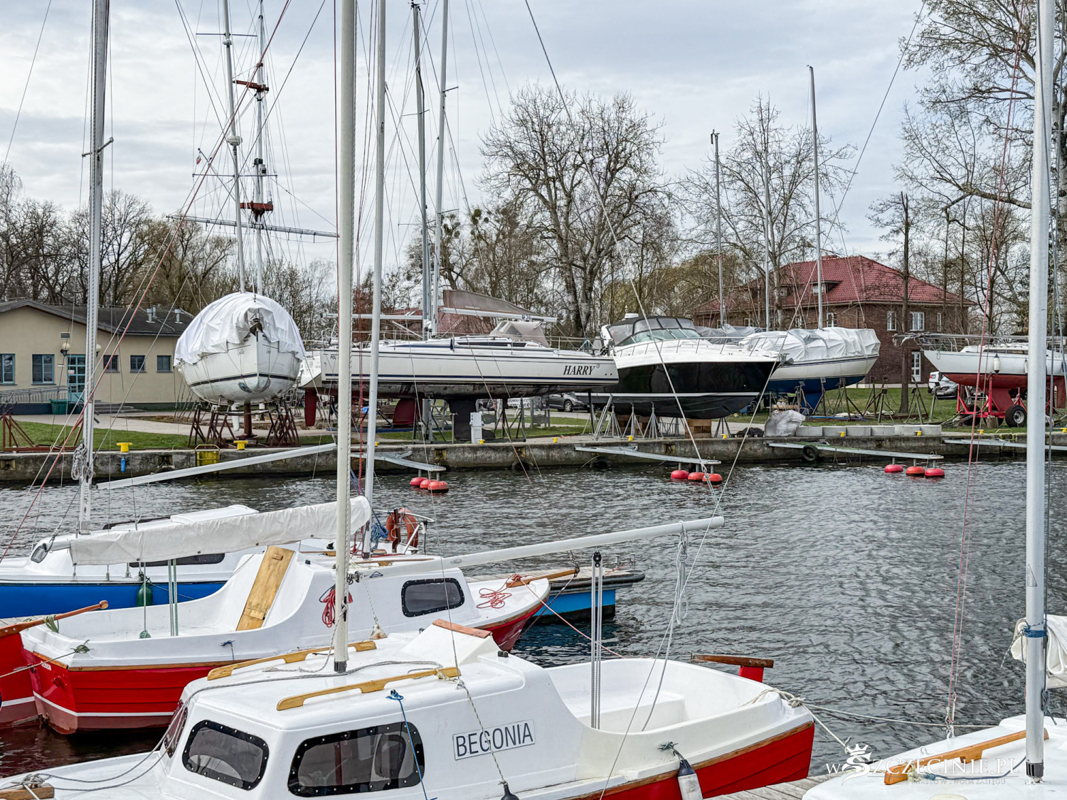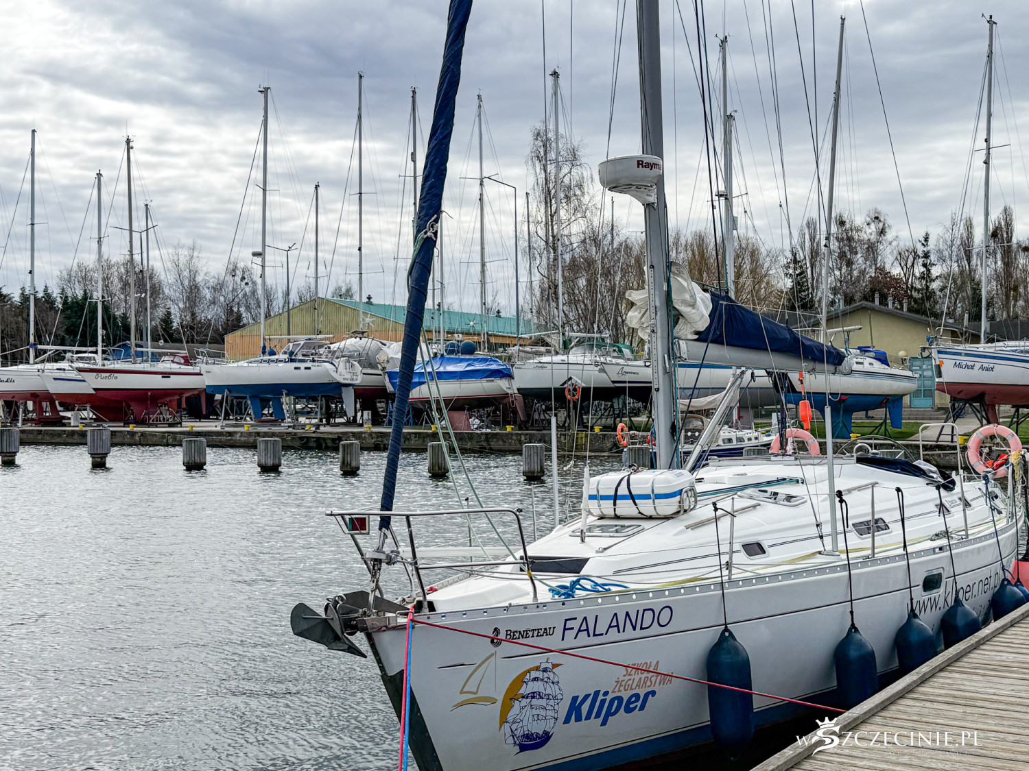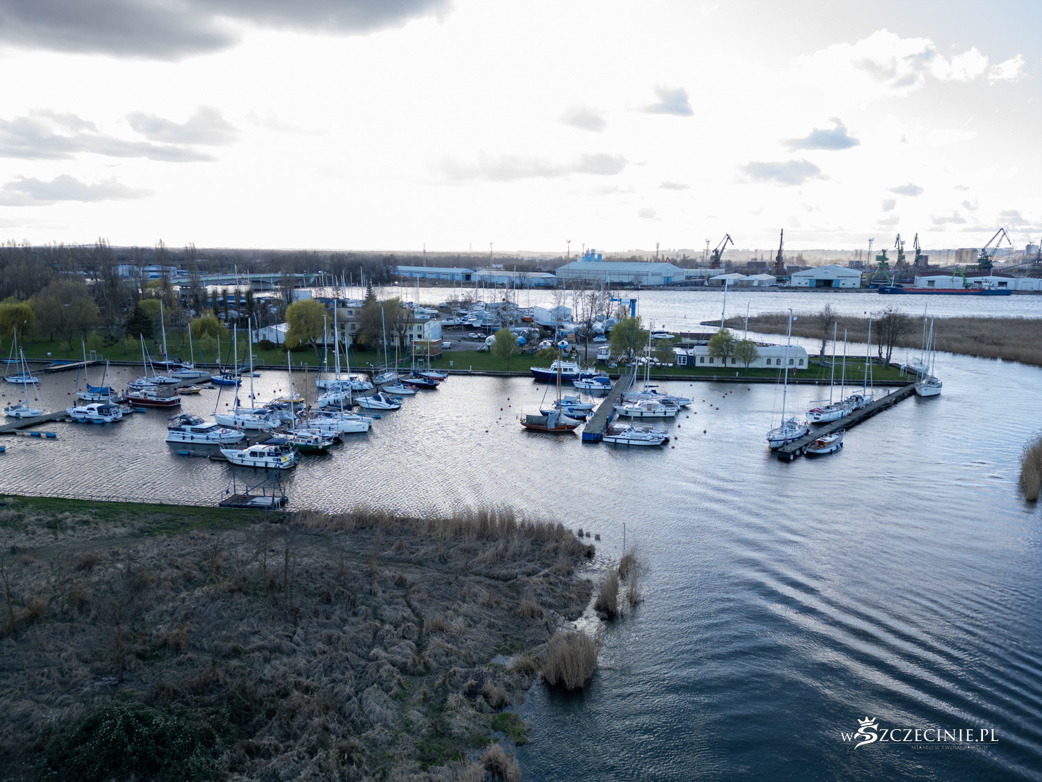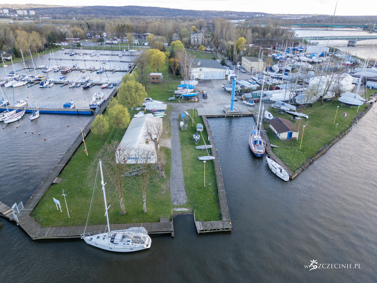 Na początek wzrok przyciąga marina Pogoni. Przez lata brzeg jeziora Dąbie kojarzył się przede wszystkim z infrastrukturą żeglarską, a nie mieszkaniówką. Pomosty i cumujące przy nich łódki na trwałe wpisały się w krajobraz.