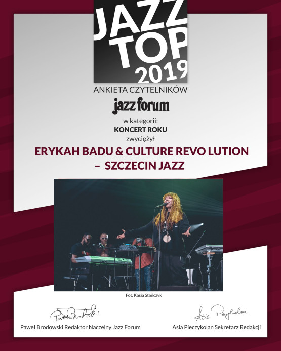 Erykah Badu była gwiazdą ubiegłorocznej czwartej edycji festiwalu Szczecin Jazz. Artystka wystąpiła 25 marca 2019 r. w szczecińskiej hali Netto Arena. Królowa dała półtoragodzinny koncert z zespołem Culture Revolution Keyona Harolda i Sylwka Ostrowskiego. W programie znalazły się jej największe hity, takie jak m.in. Rimshot.