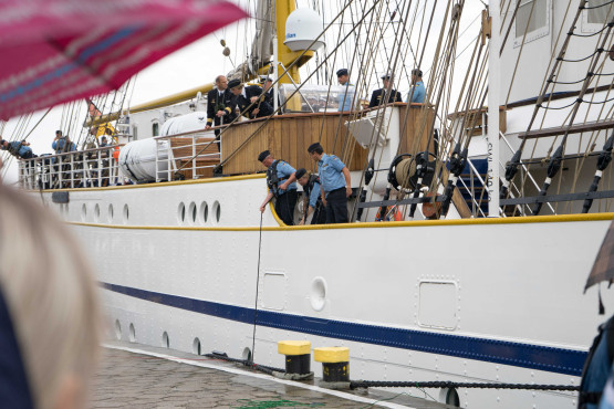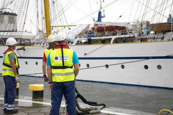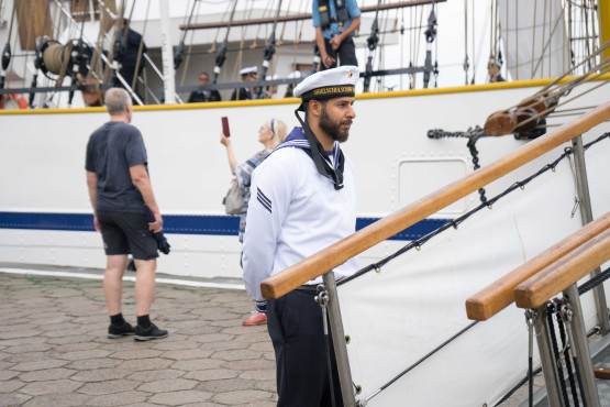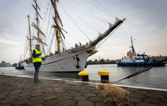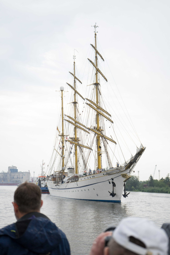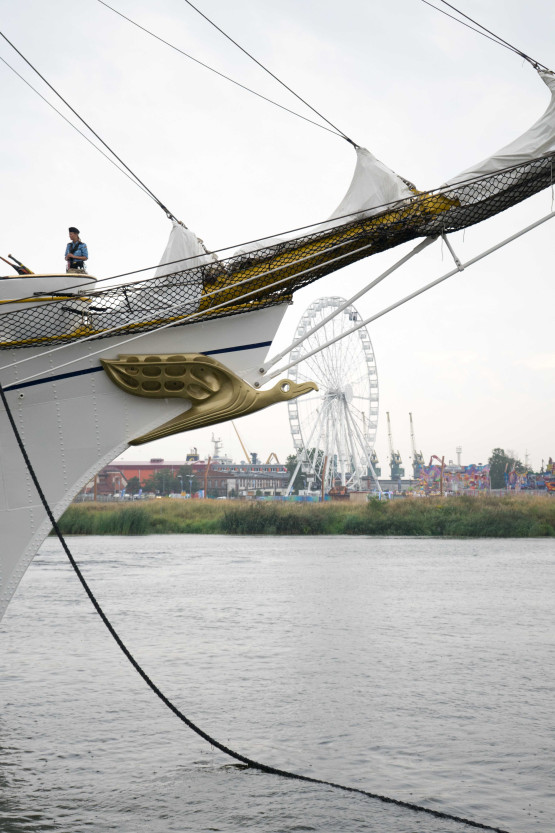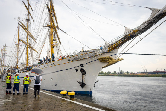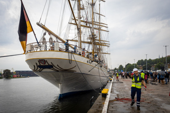 Żaglowiec „Gorch Fock II” zacumował tuż przy bulwarze Chrobrego. Wraz z ORP „Iskra” znajdują się w sercu wydarzenia „Żagle 2022”. Niemiecka jednostka ma prawie 90 metrów długości, a jej zanurzenie wynosi ponad 5 metrów.